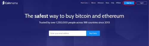 1. If you don’t already have a Coinmama account, head to the Coinmama website and select the blue “Sign Up” tab.