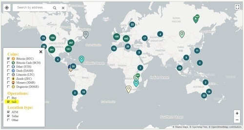 Bitcoin ATMs (“BTMs”) are another option for cashing out your coins. Although there are over 4,300 such BTMs all around the world, most of them are for buying Bitcoins only. To locate those that will pay out in cash for Bitcoins, try this: visit the CoinATMradar site, deselect the “Buy” box, and ensure the “Sell” box is checked: