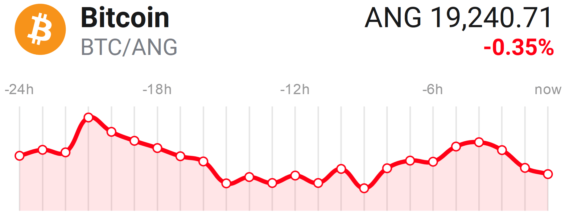 The current price of Bitcoin in the Netherlands is ANG 19,240, however this amount changes every minute, so always check the value on your local exchange.